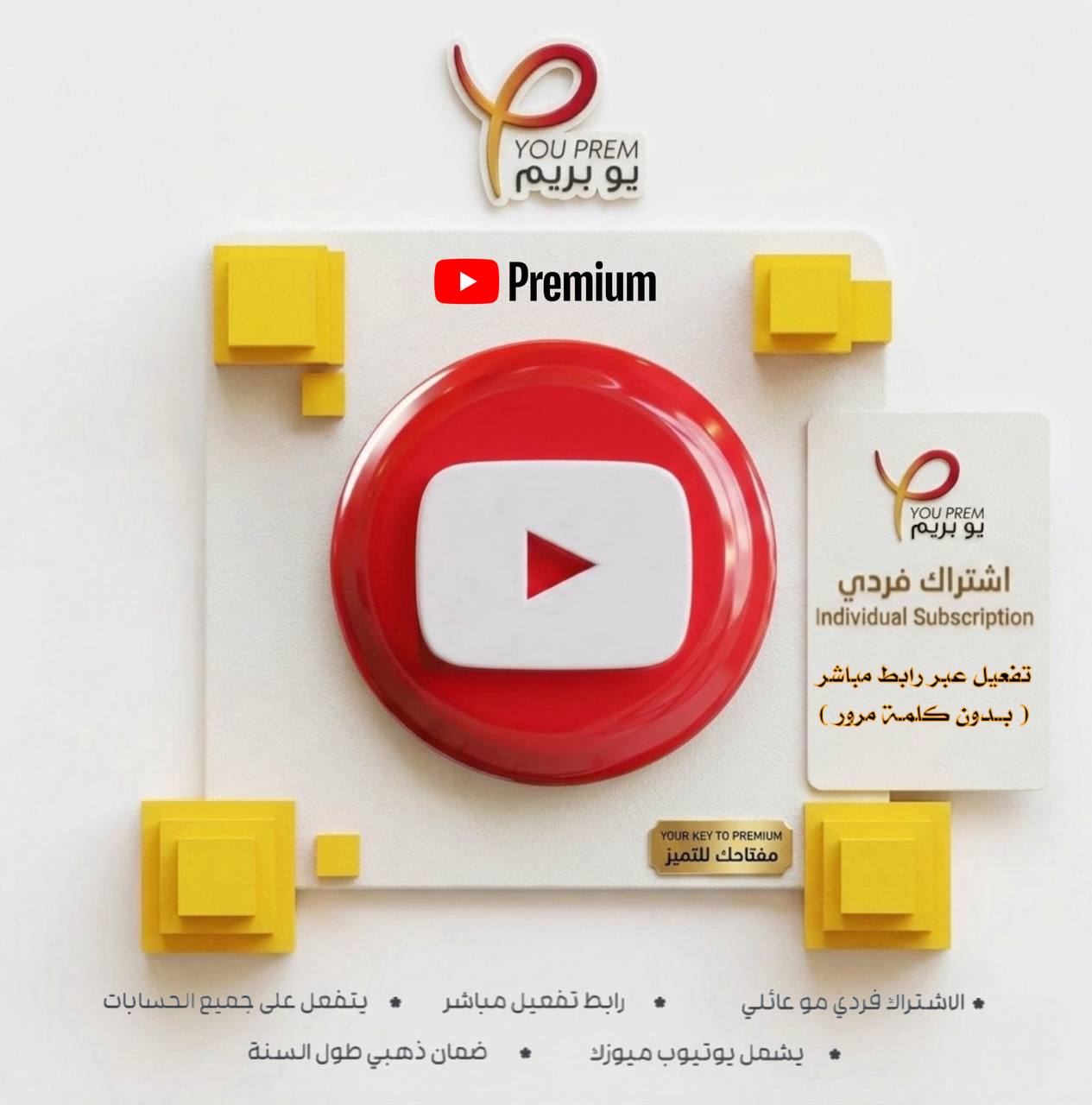 يوتيوب بريميوم سنة فردي (تفعيل عبر رابط - بدون كلمة مرور)